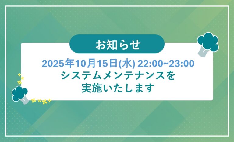 - 2025/09/30(火) お知らせ【重要】システムメンテナンスのお知らせ|2025年10月15日(水) 22:00~23:00
