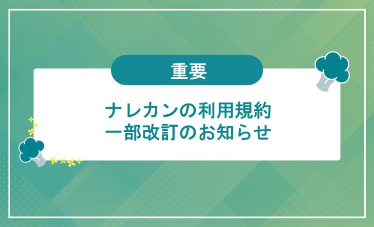 - 2026/03/30(月) お知らせ【重要】ナレカン利用規約の一部改定のお知らせ