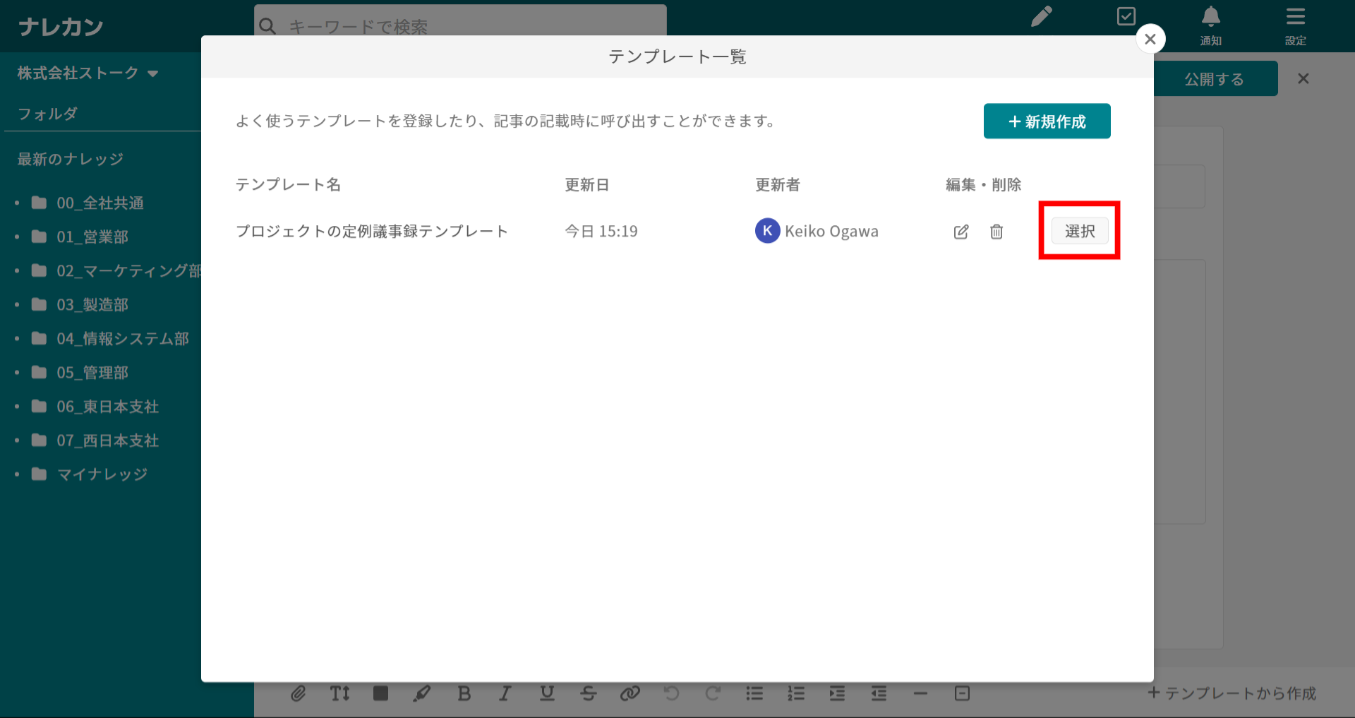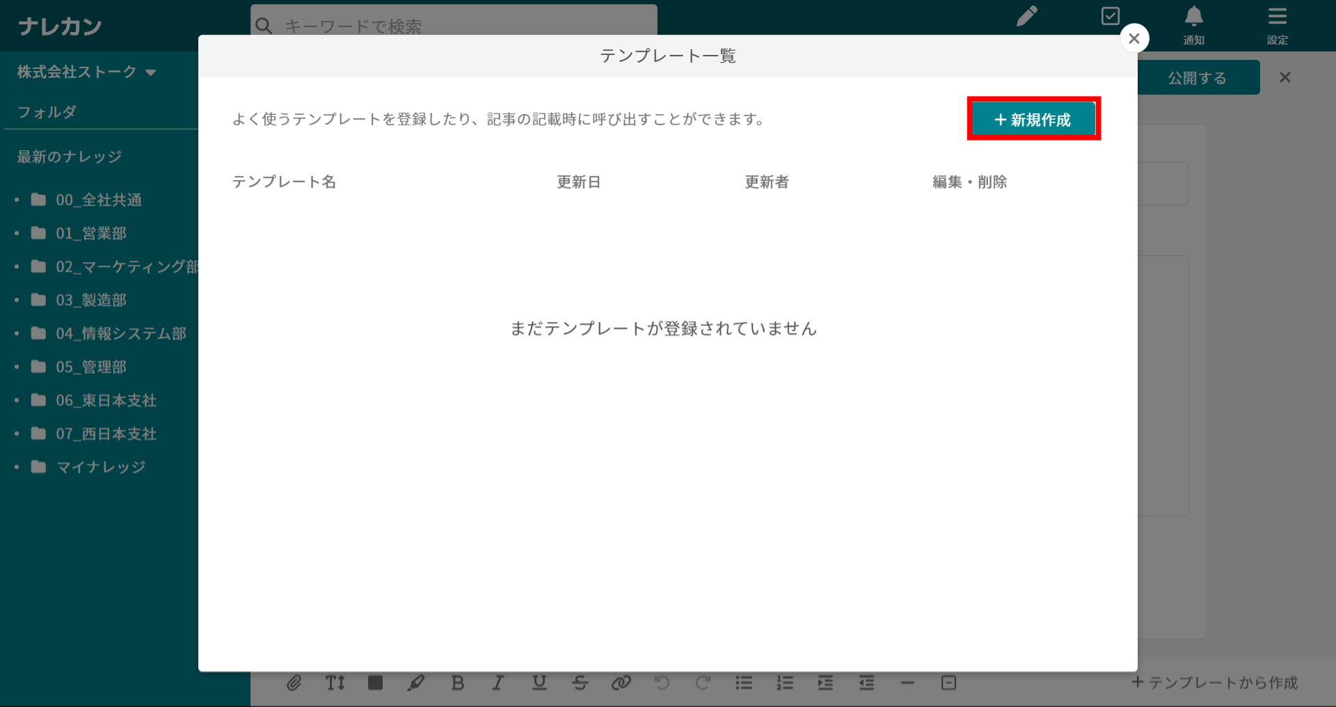②「+新規作成」をクリックし、新しいテンプレートを登録できます。