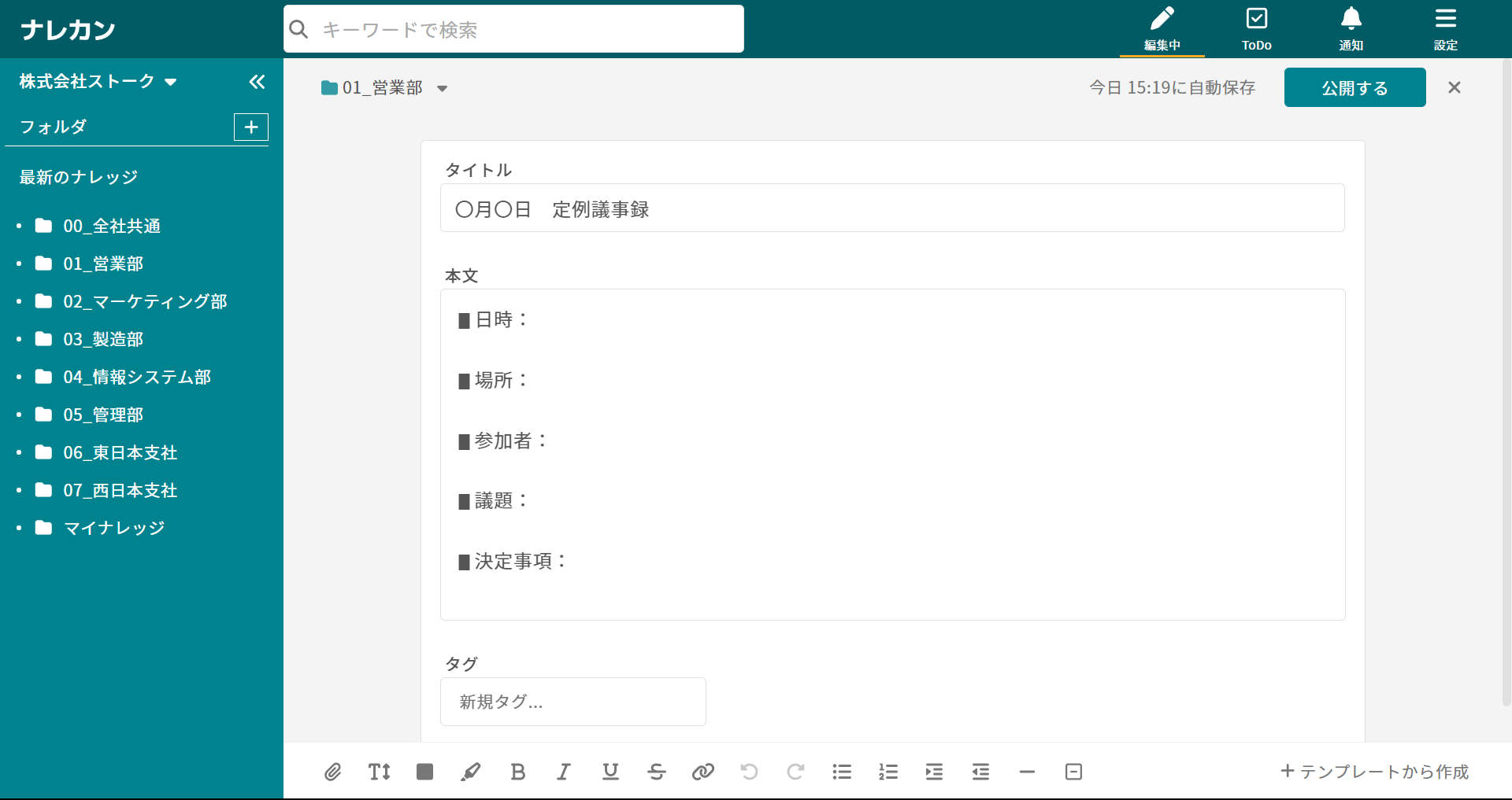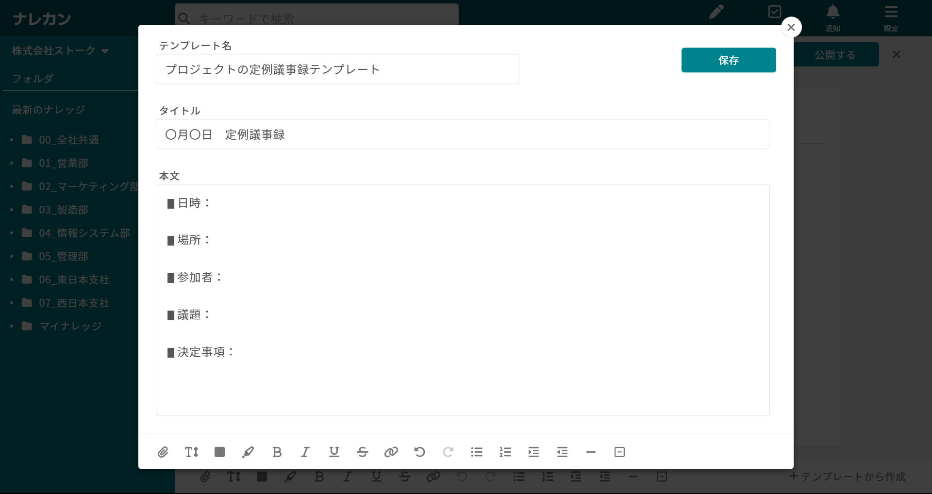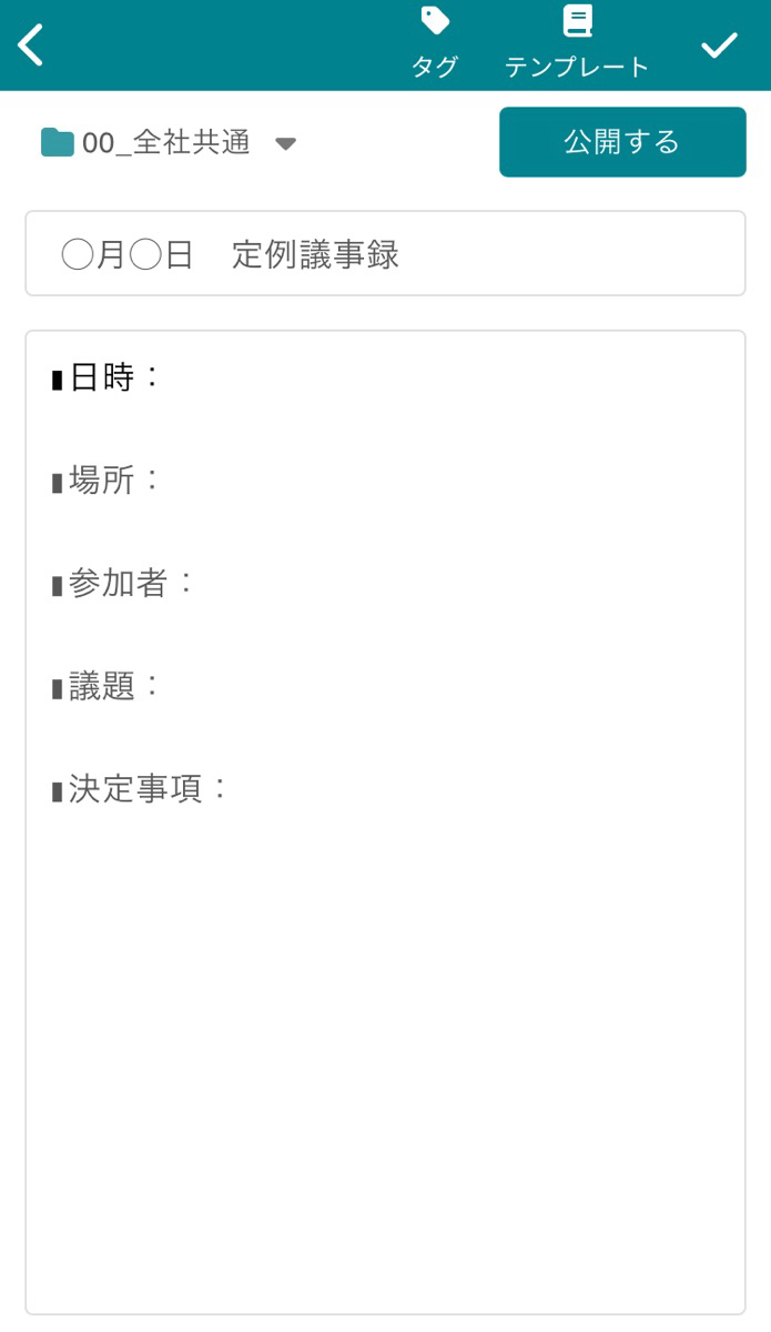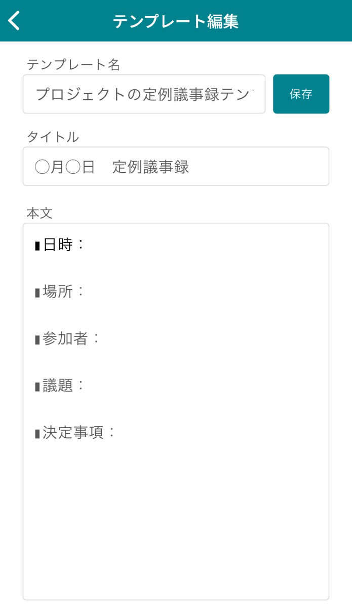 ③例えば、下記のように議事録のテンプレートを登録できます。