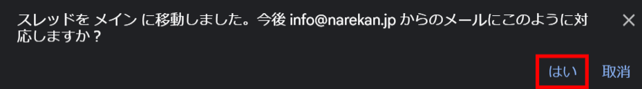 2)「今後 [email protected] からのメールにこのように対応しますか?」のメッセージが表示されますので、右側の「はい」をクリックしてください。