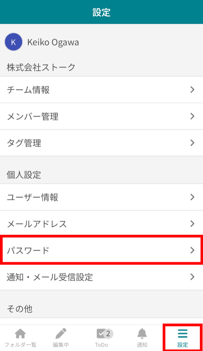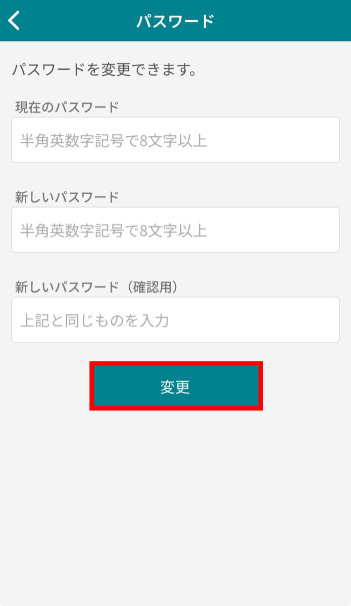 ②「現在のパスワード」「新しいパスワード」を入力し、「変更」ボタンをタップします。