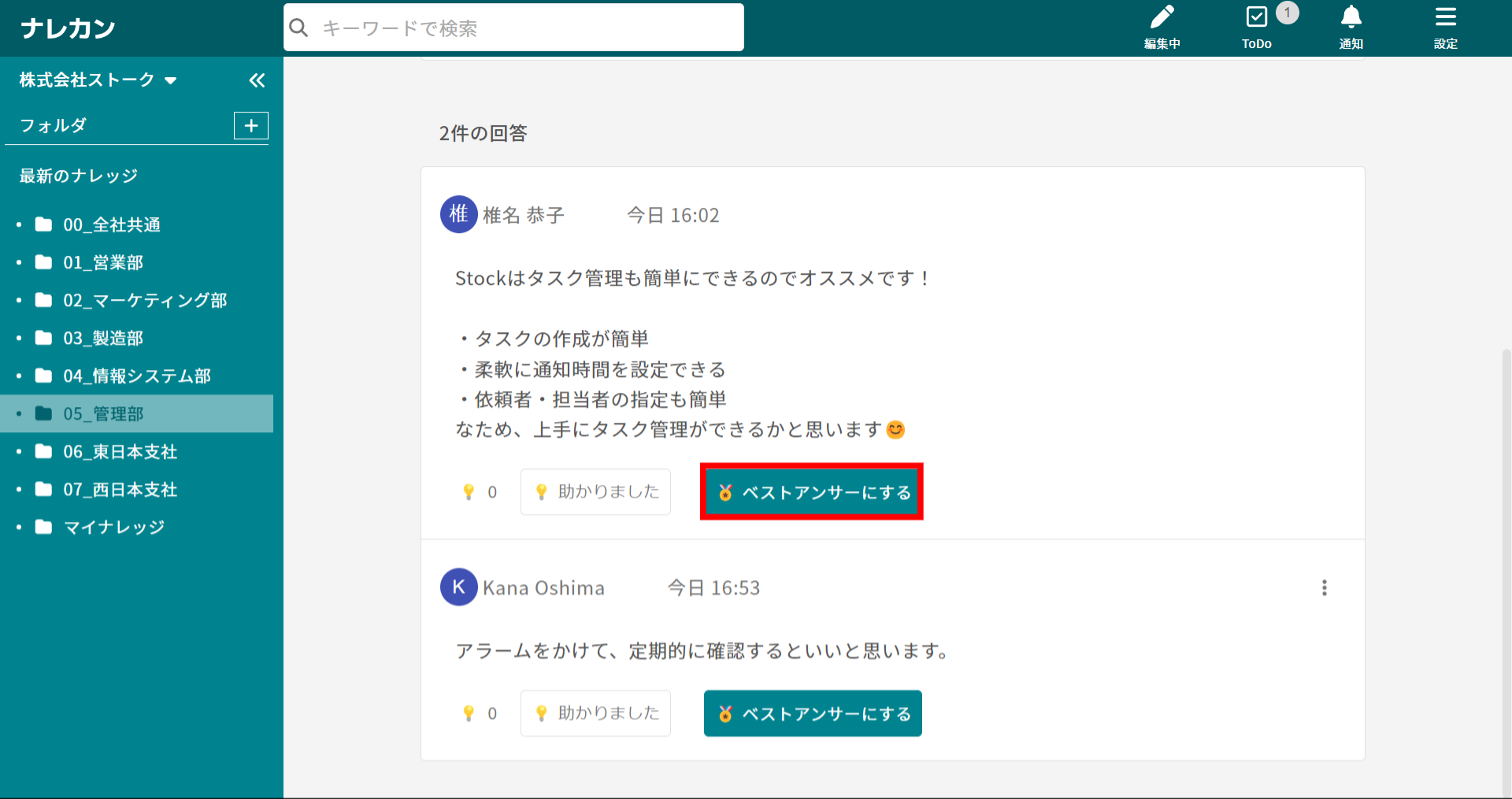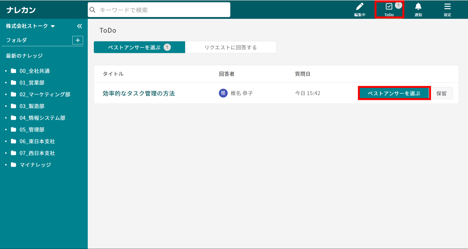 ベストアンサーを選ぶ必要のある質問は、画面右上の「ToDo」から確認することができます。