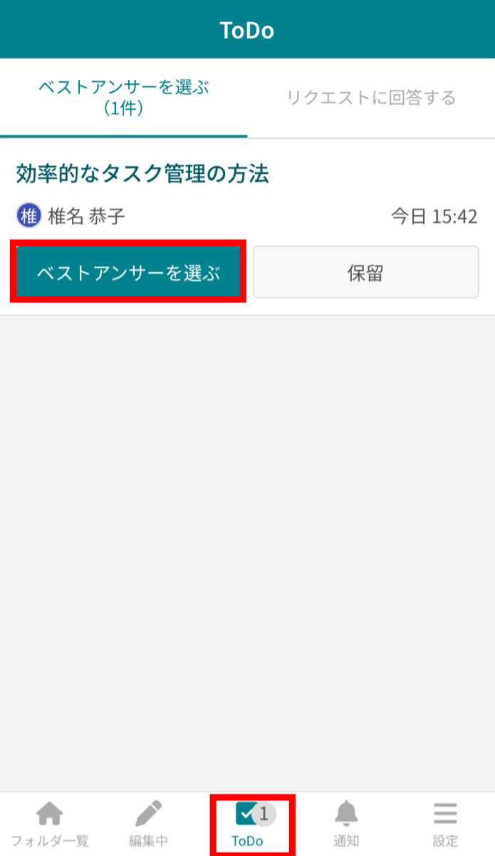 ベストアンサーを選ぶ必要のある質問は、画面下の「ToDo」から確認することができます。