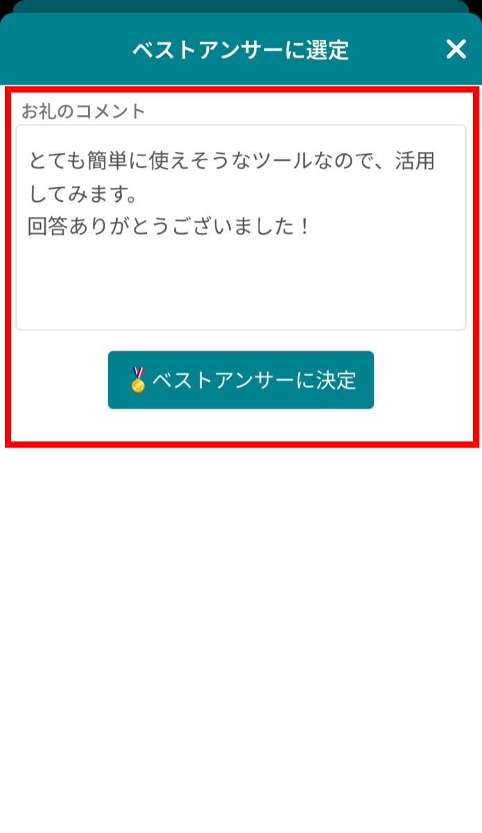 ③任意で「お礼のコメント」を入力し、「ベストアンサーに決定」をタップします。